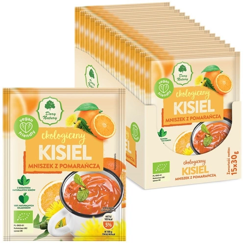 Ekologiczny kisiel pigwowiec z pomarańczą, z dodatkiem naturalnych soków i w 100 % z naturalnych składników. Pyszna przekąska do szybkiego i łatwego przygotowania w kubku.