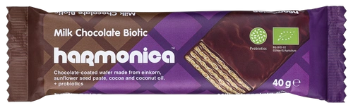 Wafelek z samopszy z kremem mlecznokakaowym w mlecznej czekoladzie z probiotykami 40 g - Harmonica (EKO)