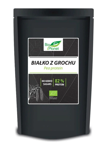 - Ekologiczne białko z grochu w proszku to naturalne źródło białka roślinnego, idealne dla wegan i wegetarian. Wspiera budowę mięśni i regenerację, doskonałe do koktajli, smoothie i wypieków.
