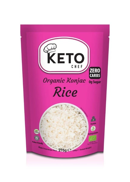 Makaron konjac w kształcie ryżu bezglutenowy 270 g (200 g) - Keto Chef (EKO)