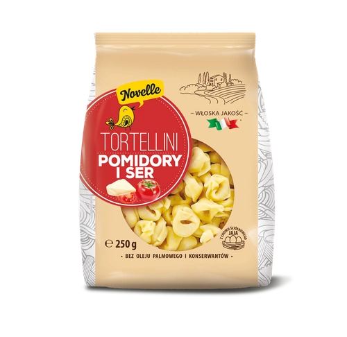 Tortellini Novelle to małe pierożki z makaronowego ciasta jajecznego z nadzieniem serowo-pomidorowym, które smakują wyśmienicie, zarówno z włoskim sosem pomidorowym, jak również na zimno stając się świetną alternatywą dla klasycznego makaronu w sałatkach.