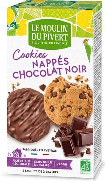 Ciastka z dropsami czekoladowymi oblane gorzką czekoladą 175 g - Le Moulin Du Pivert (EKO)