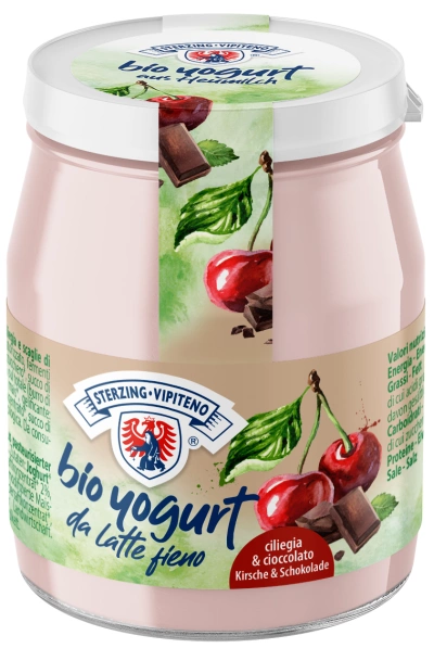Jogurt wiśniowy z kawałkami czekolady z mleka siennego bezglutenowy 150 g - Sterzing-Vipiteno (EKO)