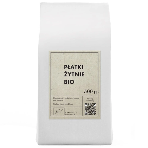 Ekologiczne płatki ŻYTNIE uzyskuje się z gniecionych ziaren żyta. Płatki ŻYTNIE to doskonała propozycja na codzienne śniadanie. Najlepiej smakują z dodatkiem jogurtu, napoju zbożowego oraz owocami.