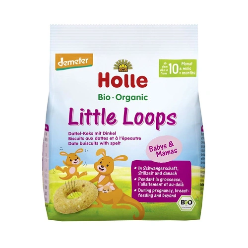 Okrągła przekąska dla niemowląt od 10. miesiąca życia i mamy. Naturalna słodycz daktyli nadaje tym małym ciasteczkom orkiszowym ich wspaniały smak. Little Loops to świetna przekąska w domu, w podróży i między posiłkami.