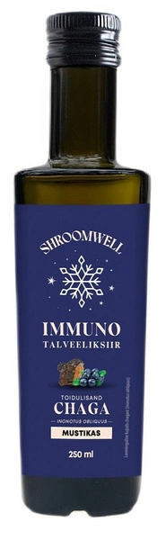 ekstrakt z chagą (66 %) [woda, owocniki chagi (Inonotus obliquus) (18 %), kwiaty krwawnika pospolitego (Achillea millefolium), pędy sosny zwyczajnej (Pinus sylvestris), ziele bylicy piołun (Artemisia absinthium)], koncentrat soku jabłkowego (Malus domestica), koncentrat soku z borówki czarnej (Vaccinium myrtillus) (8 %), przeciwutleniacz (kwas askorbinowy), imbir (Zingiber officinale Roscoe) (0,4 %), laska cynamonu cejlońskiego (Cinnamomum verum), naturalny aromat borówki, inne przyprawy (kardamon, goździki, czarny pieprz, ziele angielskie, gałka muszkatołowa).