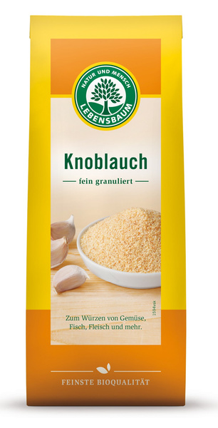 Czosnek jest jedną z najpopularniejszych przypraw na świecie i nadaje wielu potrawom intensywny akcent. Znany jest również z aromatycznego, ostrego zapachu i smaku. Od firmy Lebensbaum otrzymujesz wysokiej jakości suszone i granulowane ząbki czosnku z certyfikowanej uprawy ekologicznej. Ząbki czosnku zostały delikatnie zmiażdżone po delikatnym suszeniu. Ten czosnek świetnie sprawdzi się w Twojej kuchni.