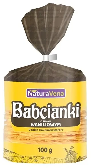Babcianki to cieniutkie wafelki z pieca wypiekane na suchej płycie bez stosowania zbędnego tłuszczu. Okrągłe, chrupiące ciasteczka stanowią idealną przekąskę. Nie zawierają barwników i spulchniaczy.
