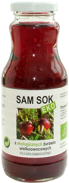 Sok bezpośrednio tłoczony z żurawiny wielkoowocowej. Posiada naturalnie kwaśny i cierpki smak. Produkt pasteryzowany. Osad na dnie butelki jest zjawiskiem naturalnym.