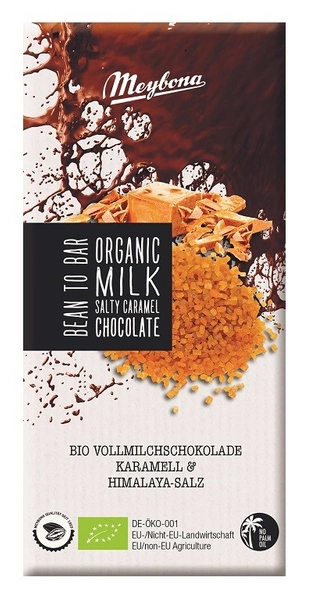Czekolada mleczna z kawałkami karmelu i solą himalajską 100 g - Meybona (EKO)